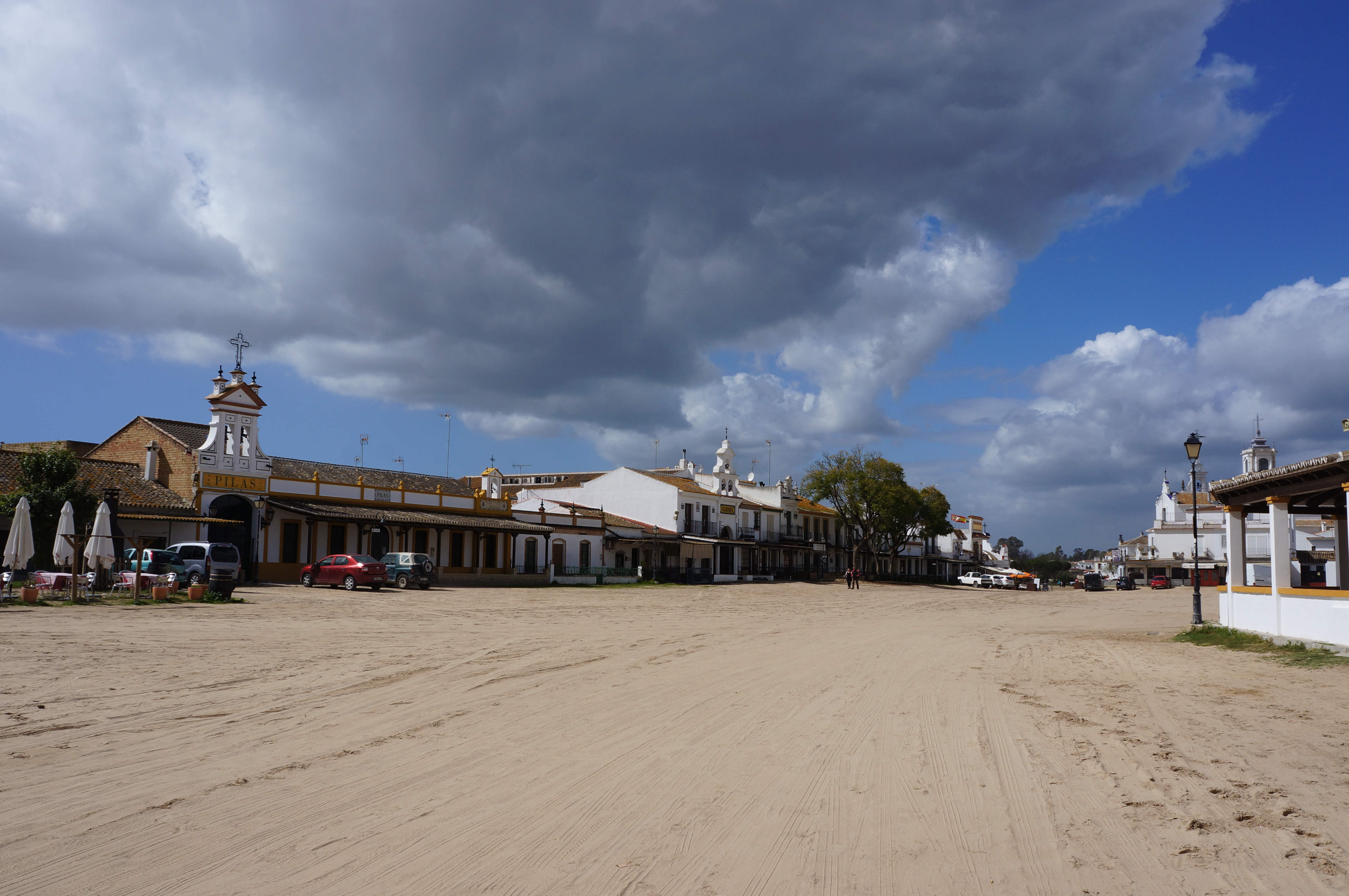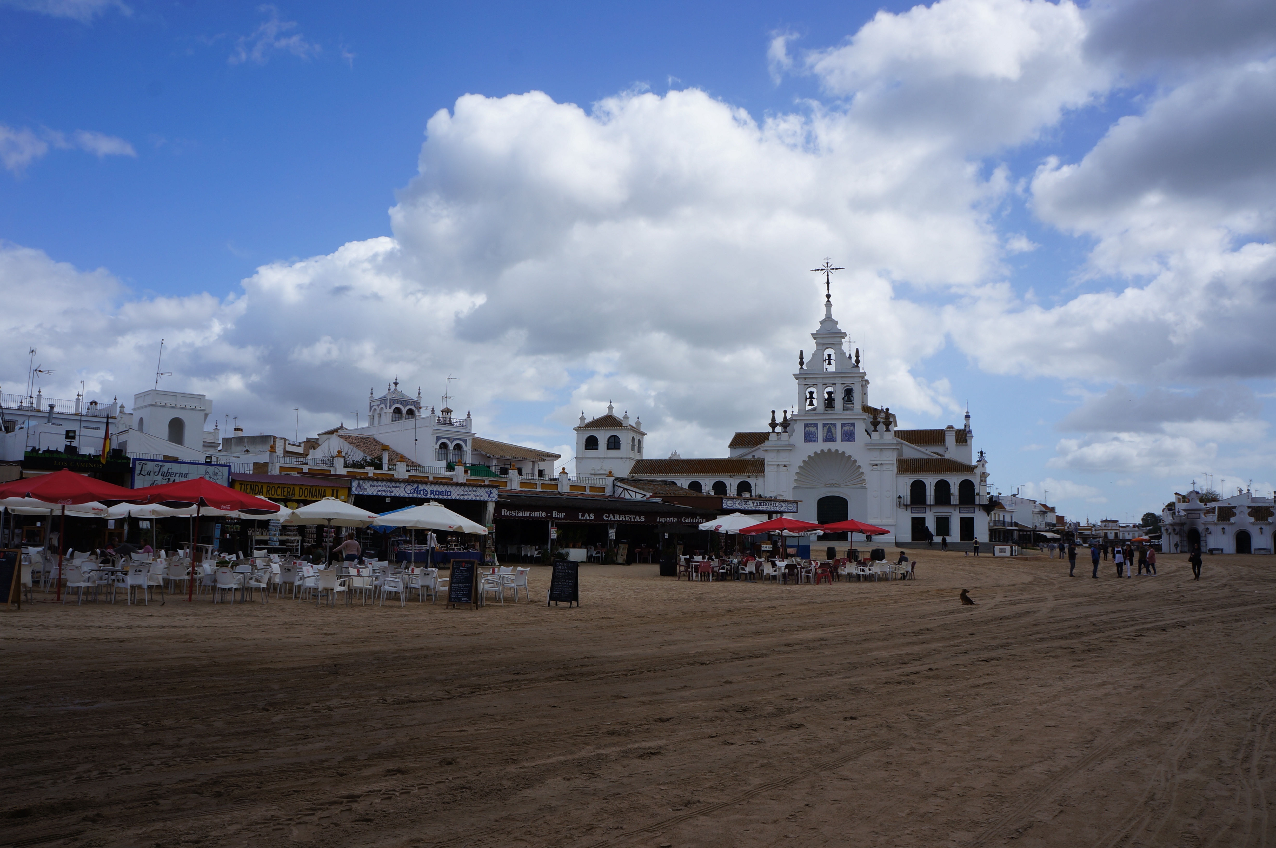 El Rocio looks like a film set from a spaghetti western – sandy streets, well-kept old little houses and horse-drawn carriages. It is quite empty and has the atmosphere of a ghost town. However, El Rocio hosts an annual pilgrimage at Pentecost and things change completely: at the festival “Romería Del Rocío” nearly a million people come to this little town to honour the saint and enjoy the party atmosphere. Hard to imagine!