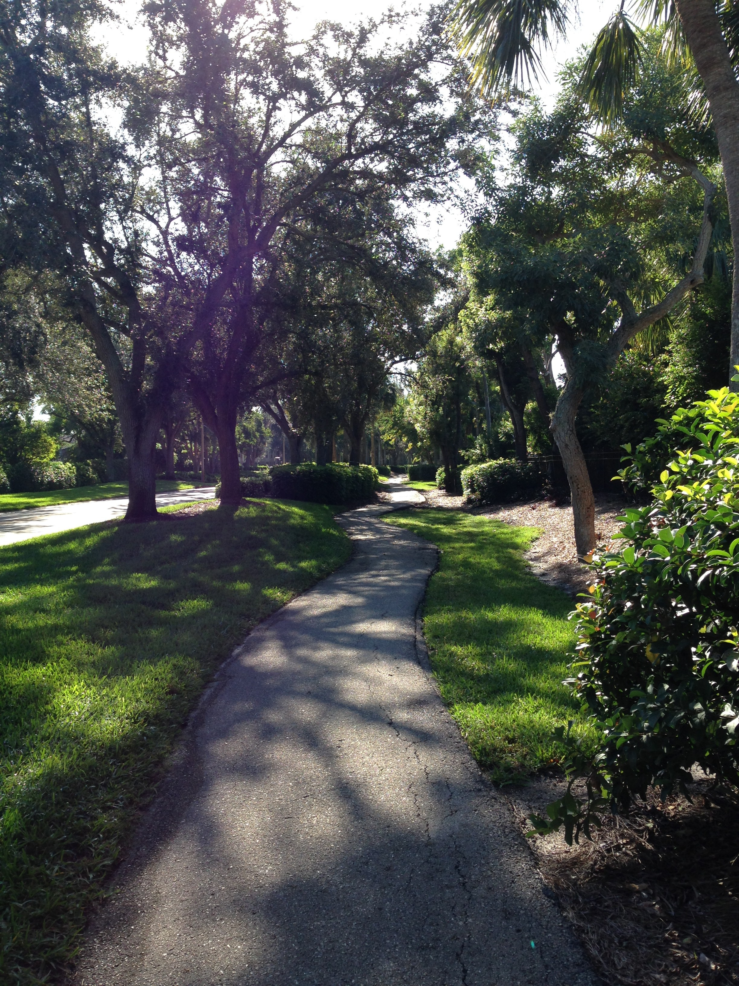 Then, past the Ritz-Carlton hotel over a mini bridge. We then turn into the beautiful area of Pelican Bay with large trees that provide shade: