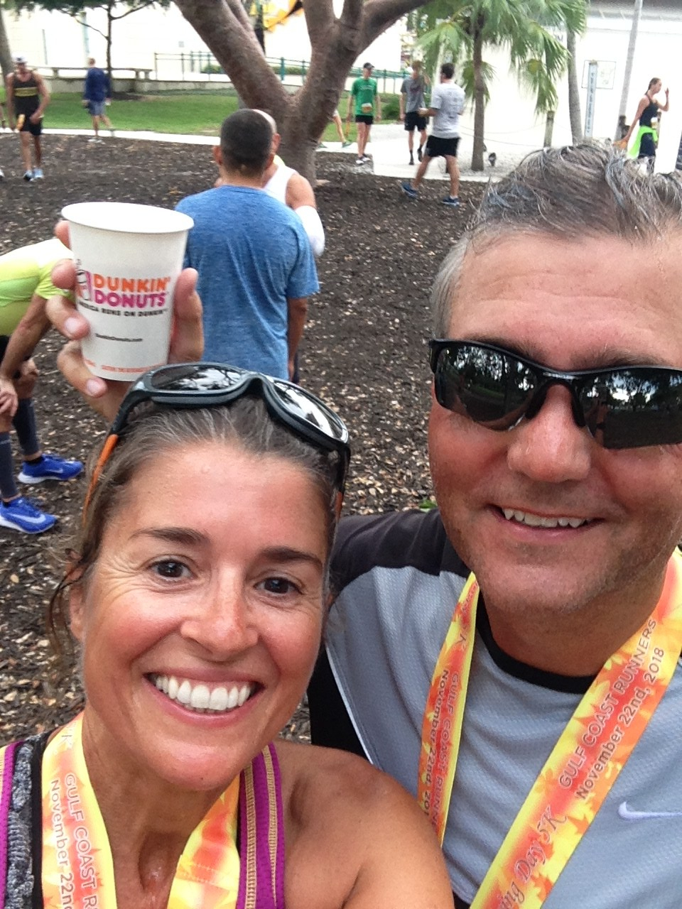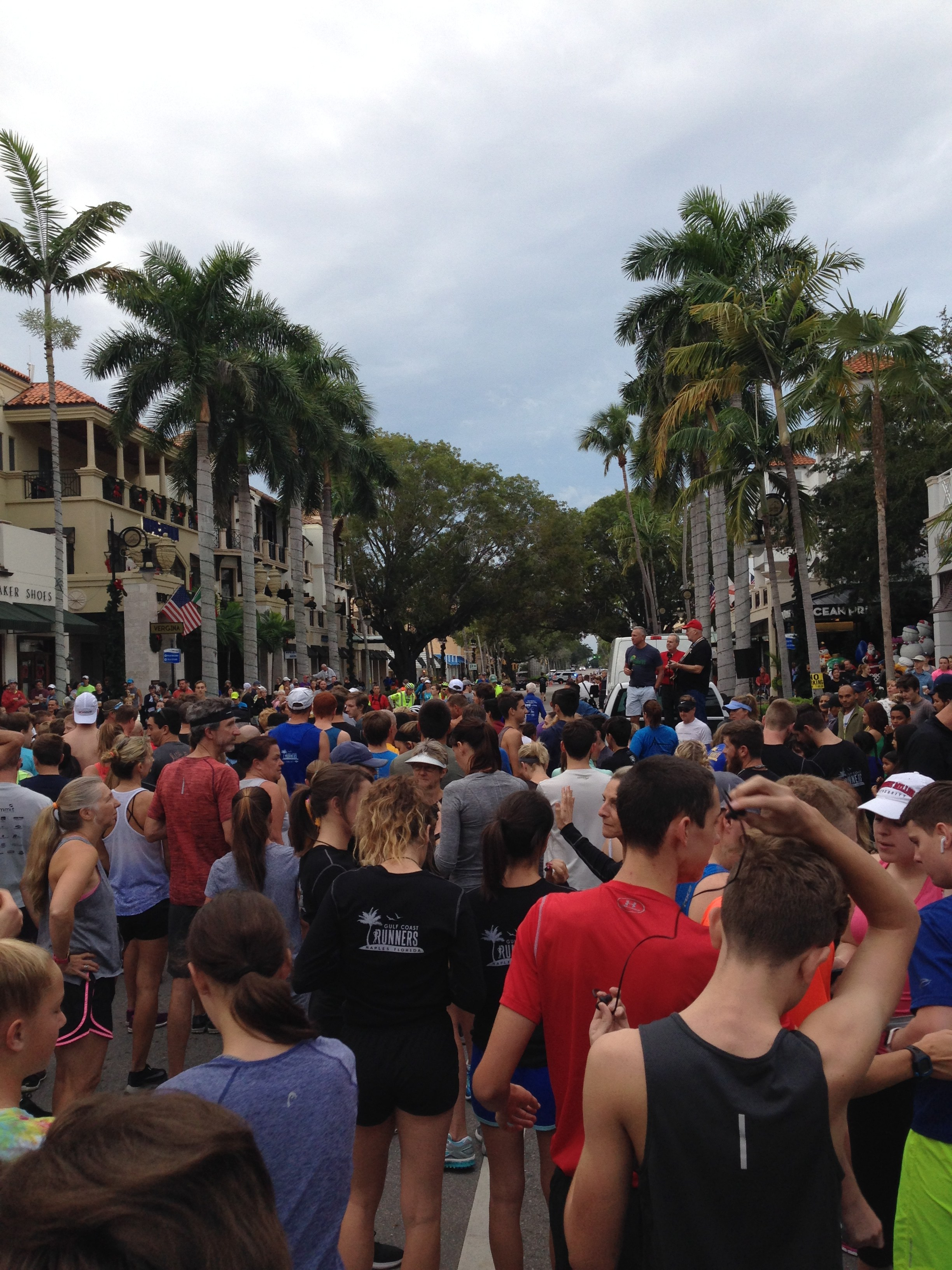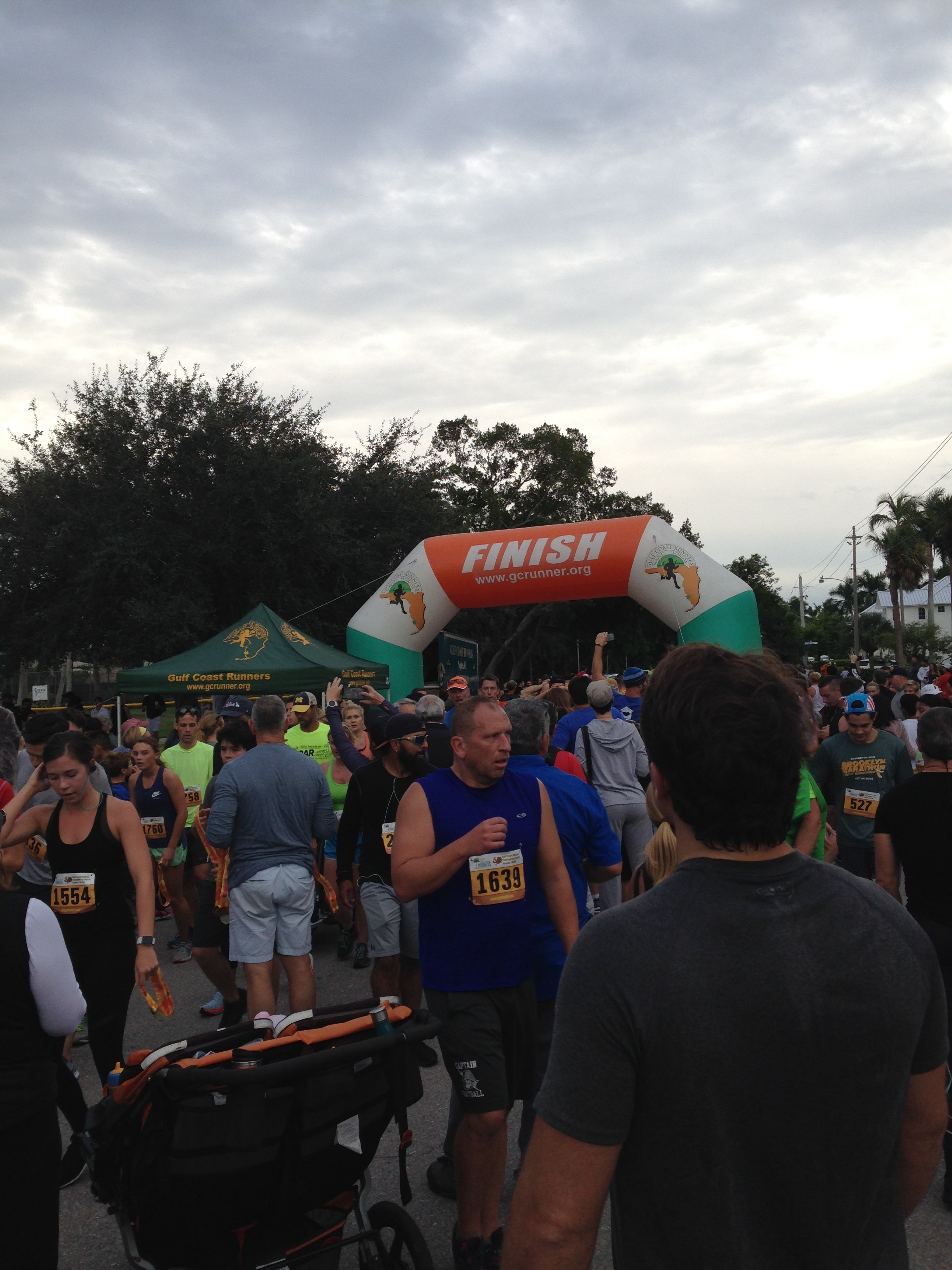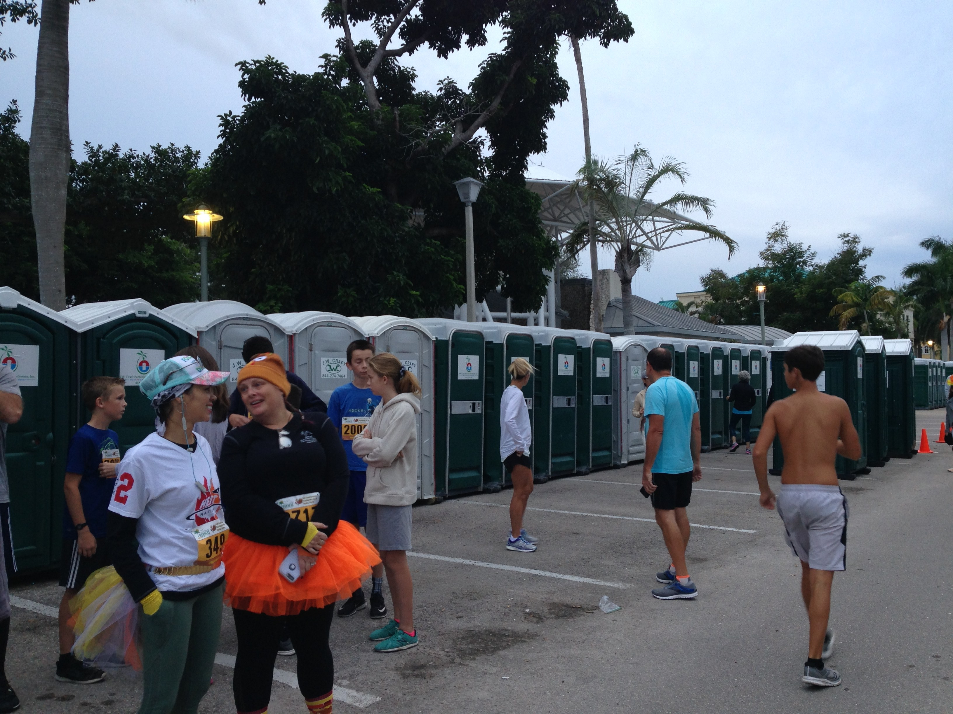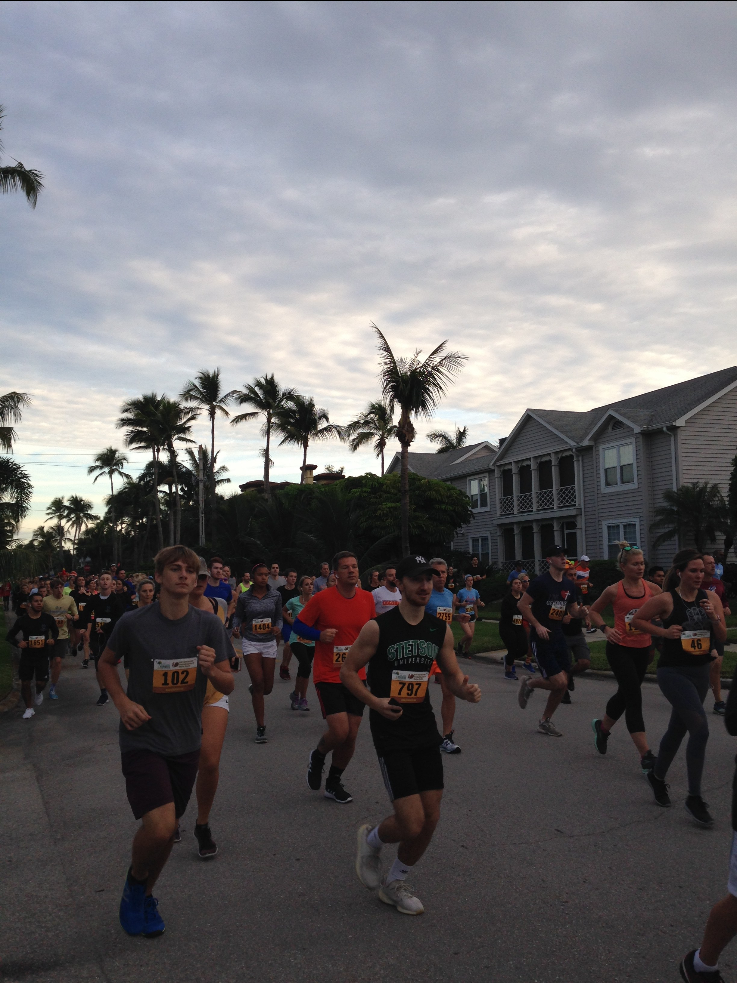 So, as every year, here we go for the 5k Turkey Trot! It is a round course that starts and finishes in Cambier Park in Downtown Naples. It is well organized and at the finishing line runners are servedĀ  pumpkin pie, apple cider and coffee. And PLENTY of porta-potties! This year we were 4’000 runners – people come from all over the US and overseas.